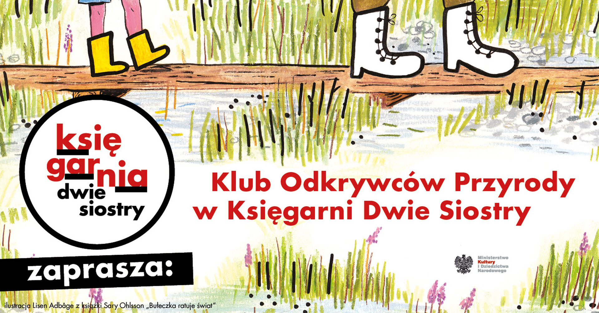 Cykl „Klub Odkrywców Przyrody w Księgarni Dwie Siostry” dofinansowano ze środków Ministra Kultury i Dziedzictwa Narodowego pochodzących z Funduszu Promocji Kultury, uzyskanych z dopłat ustanowionych w grach objętych monopolem państwa, zgodnie z art. 80 ust. 1 ustawy z dnia 19 listopada 2009 r. o grach hazardowych.