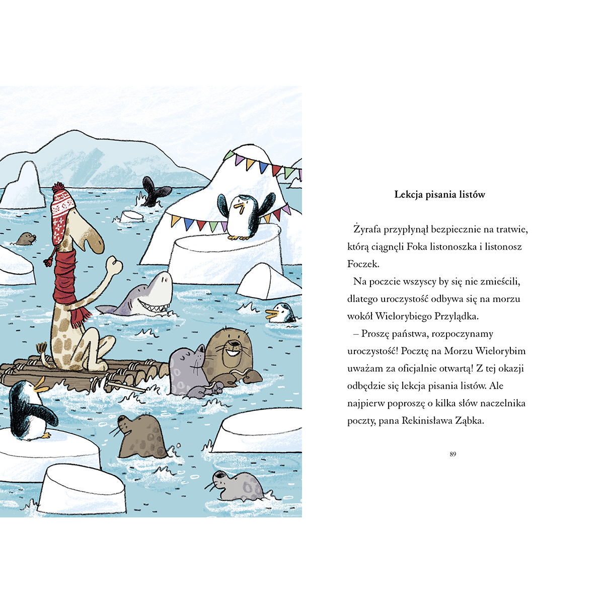 Tymczasem na Morzu Wielorybim dużo się dzieje. Dość wspomnieć, że sam Żyrafa przybył z Afryki, żeby poprowadzić warsztaty pisania listów na nowo otwartej poczcie. Bierze w nich udział całkiem sporo osób, a jedna z nich zostawia w kopercie przeprosiny. Listonosze doskonale wiedzą, komu je doręczyć…