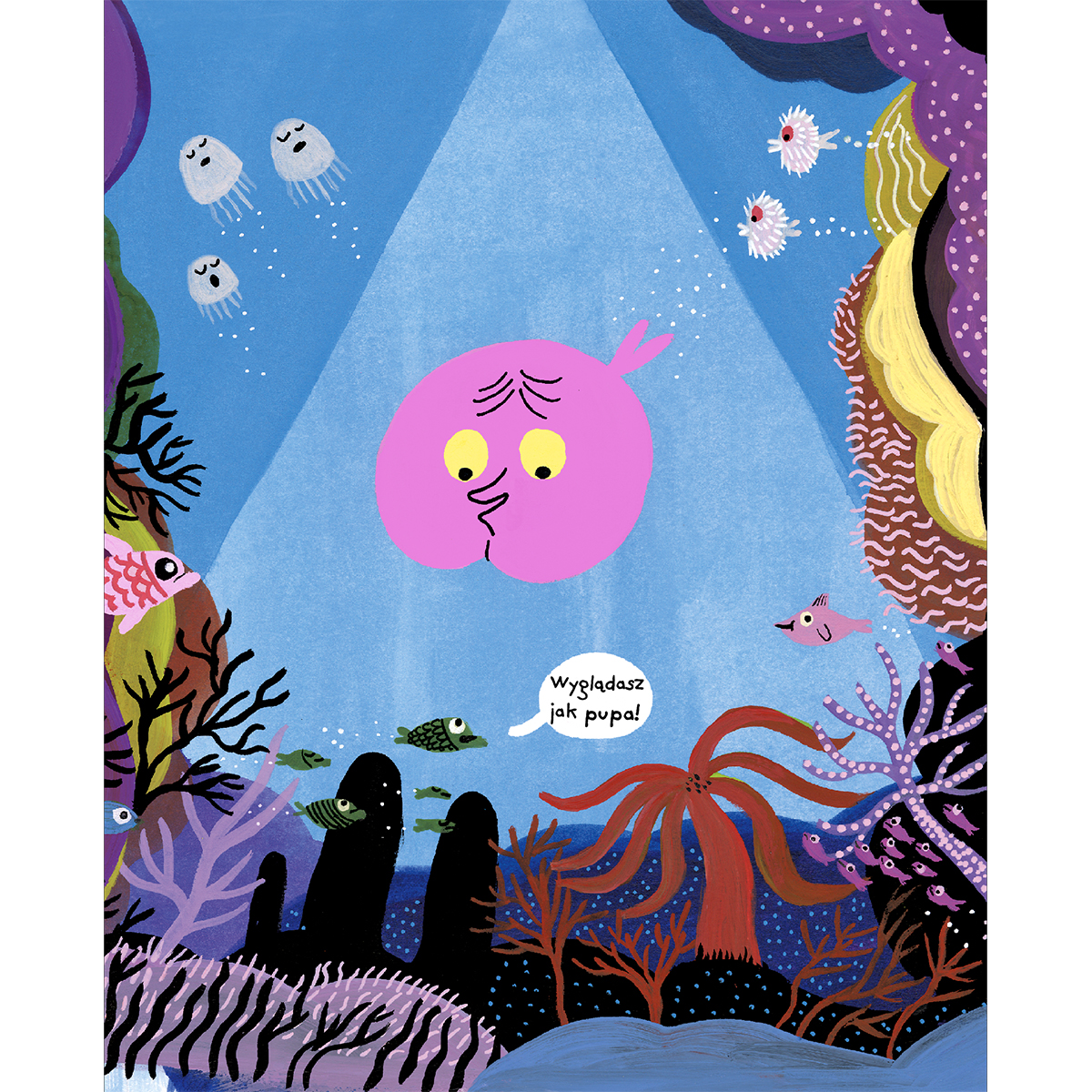 Choć Ryba Pupa śmieje się z innymi z własnego wyglądu, w głębi duszy marzy o tym, by być zwyczajną rybą. A gdy w końcu ma już dość rozśmieszania wszystkich wokół, postanawia zanurkować w głębiny. Tam spotka kogoś jeszcze dziwniejszego od siebie – i polubi go jak nikogo innego. I właśnie tam odkryje, że w zasadzie jest Rybą Sercem.
